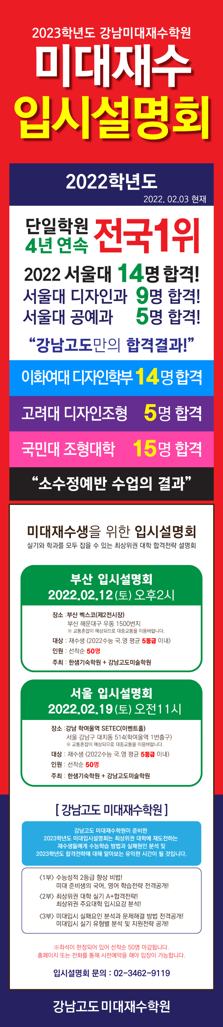 Á¦¸ñ 2023¹Ì´ëÀç¼ö ÃÖ»óÀ§´ëÇÐ ¹Ì´ëÀԽü³¸íȸ ÀÛ¼ºÀÏÀÚ 2022-01-19 2023¹Ì´ëÀç¼öÃÖ»óÀ§±Ç ¹Ì¼ú´ëÇм¿ï/ºÎ»êÀԽü³¸íȸ!À̹ø ÀԽü³¸íȸ´Â °³²°íµµ¹Ì¼úÇпø°ú ÇÑ»ù±â¼÷ÇпøÀÌ ÇÔ²² ÁÖÃÖÇÏ´ÂÃÖ»óÀ§ ¹Ì¼ú´ëÇÐ ÇÕ°ÝÀü·« ÀԽü³¸íȸ·Î¼¿ï°ú ºÎ»ê¿¡¼ °³ÃÖÇÕ´Ï´Ù.