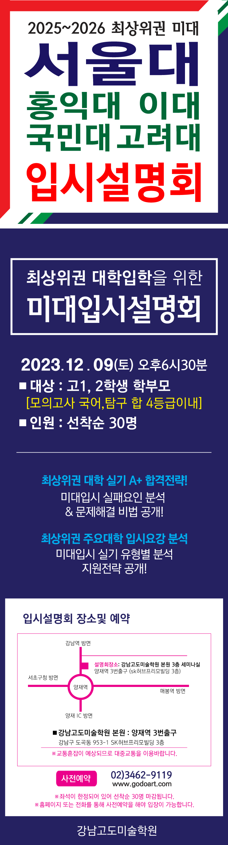 Á¦¸ñ °í1, 2Çлý ÃÖ»óÀ§±Ç´ëÇÐ ¹Ì´ëÀԽü³¸íȸ! ÀÛ¼ºÀÏÀÚ 2023-10-27 2025~2026Çг⵵°í1, 2ÇлýÀ» À§ÇÑÃÖ»óÀ§±Ç ´ëÇÐÀԽü³¸íȸ!