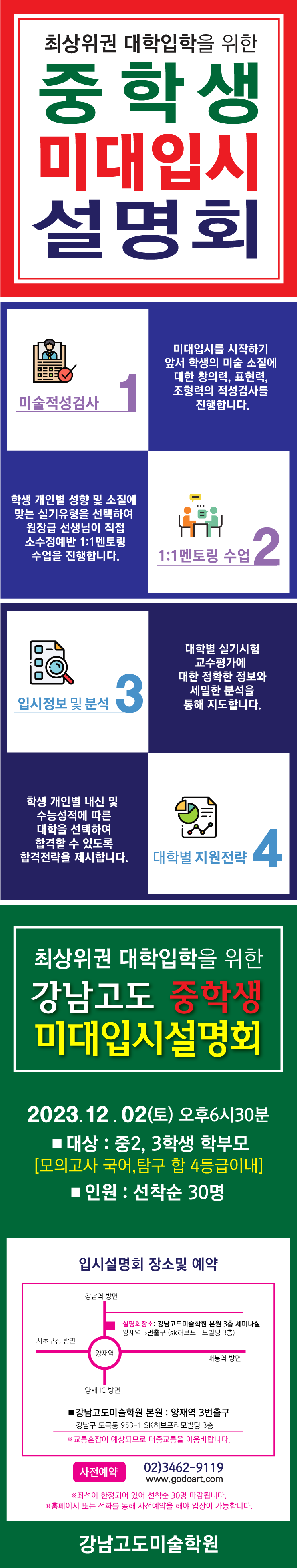 Á¦¸ñ ÁßÇлý ¹Ì´ëÀԽü³¸íȸ! ÀÛ¼ºÀÏÀÚ 2023-10-27 ÃÖ»óÀ§±Ç ´ëÇÐÀÔÇÐÀ» À§ÇÑÁßÇб³ 2, 3Çлý¹Ì´ëÀԽü³¸íȸ!