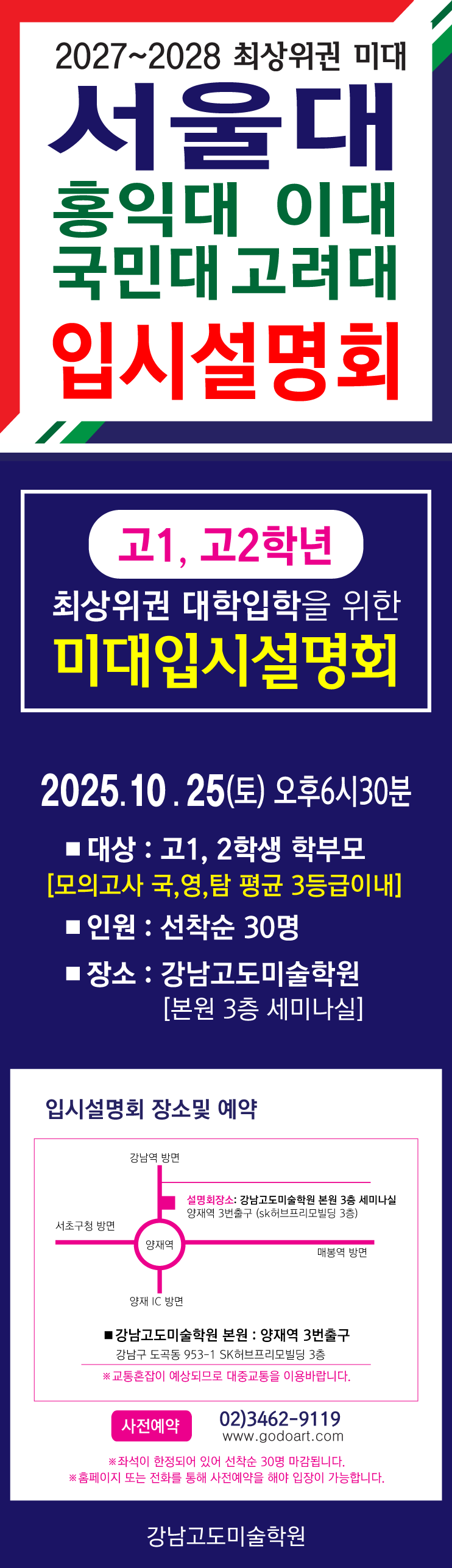 Á¦¸ñ [°í1,2] ÃÖ»óÀ§±Ç ¹Ì´ëÀԽü³¸íȸ! [10¿ù¼³¸íȸ] ÀÛ¼ºÀÏÀÚ 2025-09-21 2027~2028ÃÖ»óÀ§±Ç ¹Ì´ë¼¿ï´ë.È«´ë.ÀÌ´ë°í´ë.±¹¹Î´ë.¼¿ï°ú±â´ëÀԽü³¸íȸ