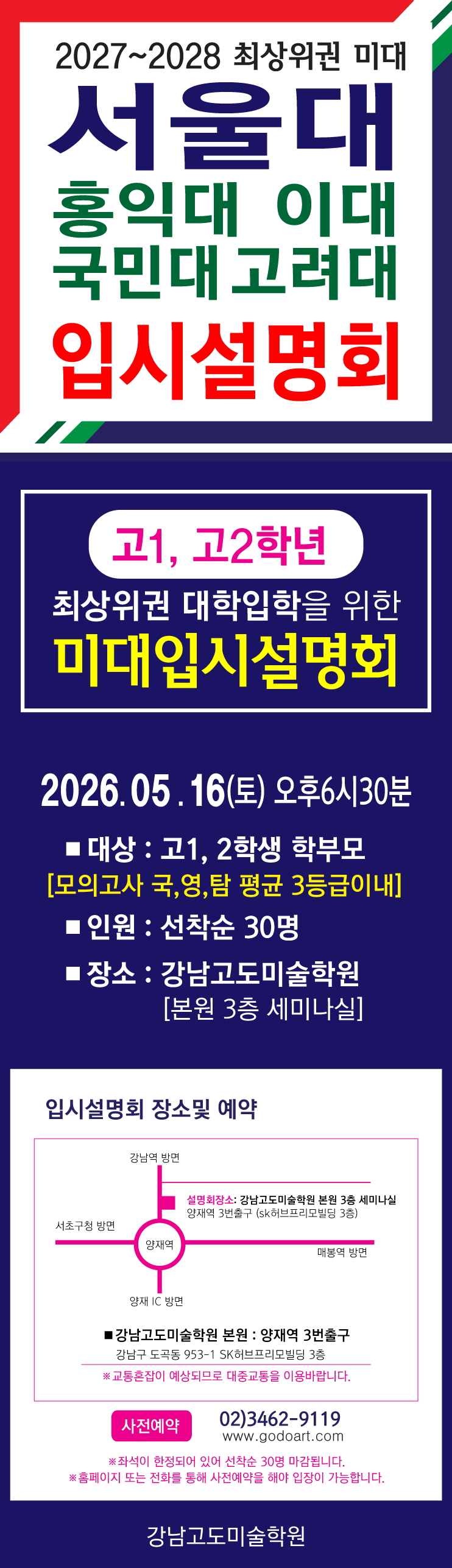 Á¦¸ñ [°í1, 2Çгâ]ÃÖ»óÀ§±Ç ¹Ì´ë ÀԽü³¸íȸ!_5¿ù¼³¸íȸ ÀÛ¼ºÀÏÀÚ 2026-04-18 [°í1, °í2Çг⠴ë»ó]ÃÖ»óÀ§±Ç ¹Ì´ëÀÔÇÐÀ» À§ÇÑ[¼¿ï´ë, È«´ë, ÀÌ´ë, °í´ë, ±¹¹Î´ë, ¼¿ï°ú±â´ë]ÀçÇлý¹Ì´ëÀԽà ¼³¸íȸ!
